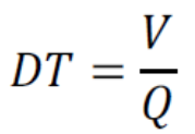 十七、停留時間(Detention Time,縮寫為 DT ):水池之有效容量除以單位時間流量所得之商,其計算式如下: