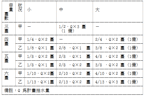 式中:V 為水池體積(立方公尺);Q 為流量(立方公尺/小時)。