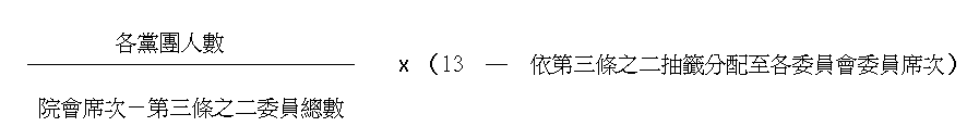 ﹝1﹞各黨團在委員會席次,依政黨比例分配之。分配算式如下: