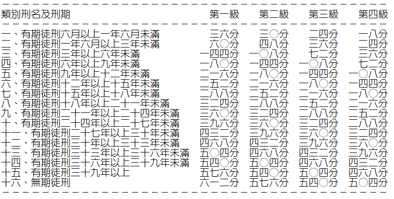 ﹝1﹞累進處遇依受刑人之刑期及級別,定其責任分數如下: