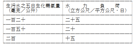 四十六、溢流負荷:單位長度之溢流堰每日所溢流之水量。