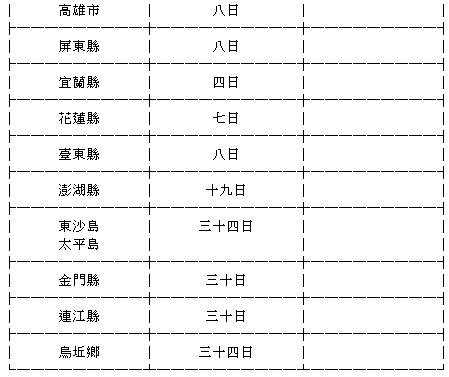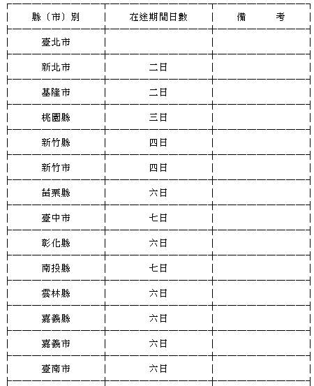 ﹝1﹞再審議聲請人居住於臺灣地區者,其在途期間之標準如下表: