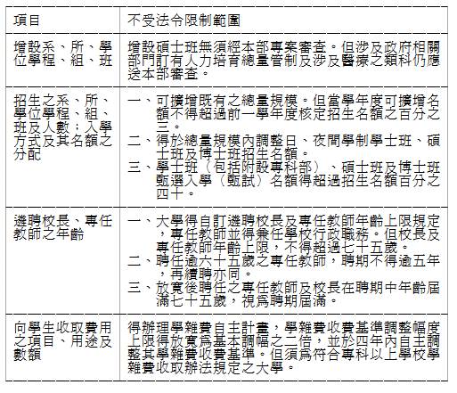 ﹝3﹞前項所定調整大學發展規模,包括增設、調整院、系、所、學程、招生名額及停止招生等事項。