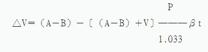 (三)採水槽式試驗者,所用膨脹指示計精密度應在百分之一範圍以內,採同位式水位計試驗者,最小刻度為零點一毫升;採非水槽式耐壓試驗之永久膨脹量△V依下列公式求得: