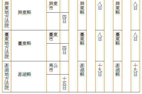 (三)福建金門地方法院與福建連江地方法院間在途期間,均以二十日計算。