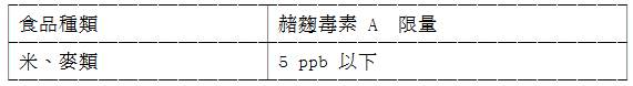食品中赭麴毒素A(OchratoxinA)限量應符合下列標準: